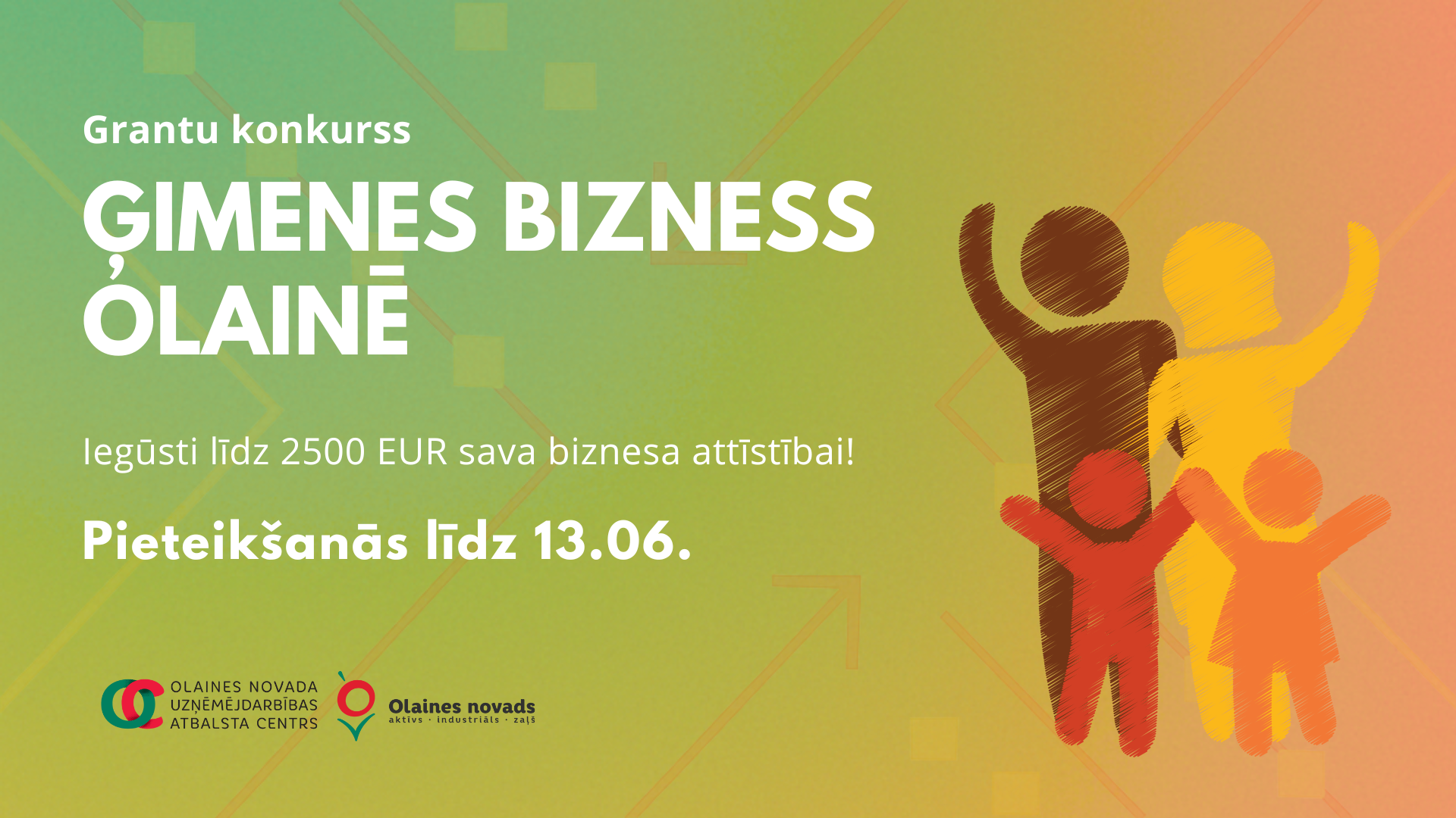 Olaines novada pašvaldība sadarbībā ar Olaines novada uzņēmējdarbības atbalsta centru izsludina grantu konkursu “Ģimenes bizness Olainē”, kura mērķis ir motivēt Olaines novada iedzīvotājus – vecākus – saskatīt sevī uzņēmēja potenciālu un uzsākt komercdarbību, kā arī sekmēt jaunu produktu un pakalpojumu veidošanu. Vairāk informācijas ŠEIT. |