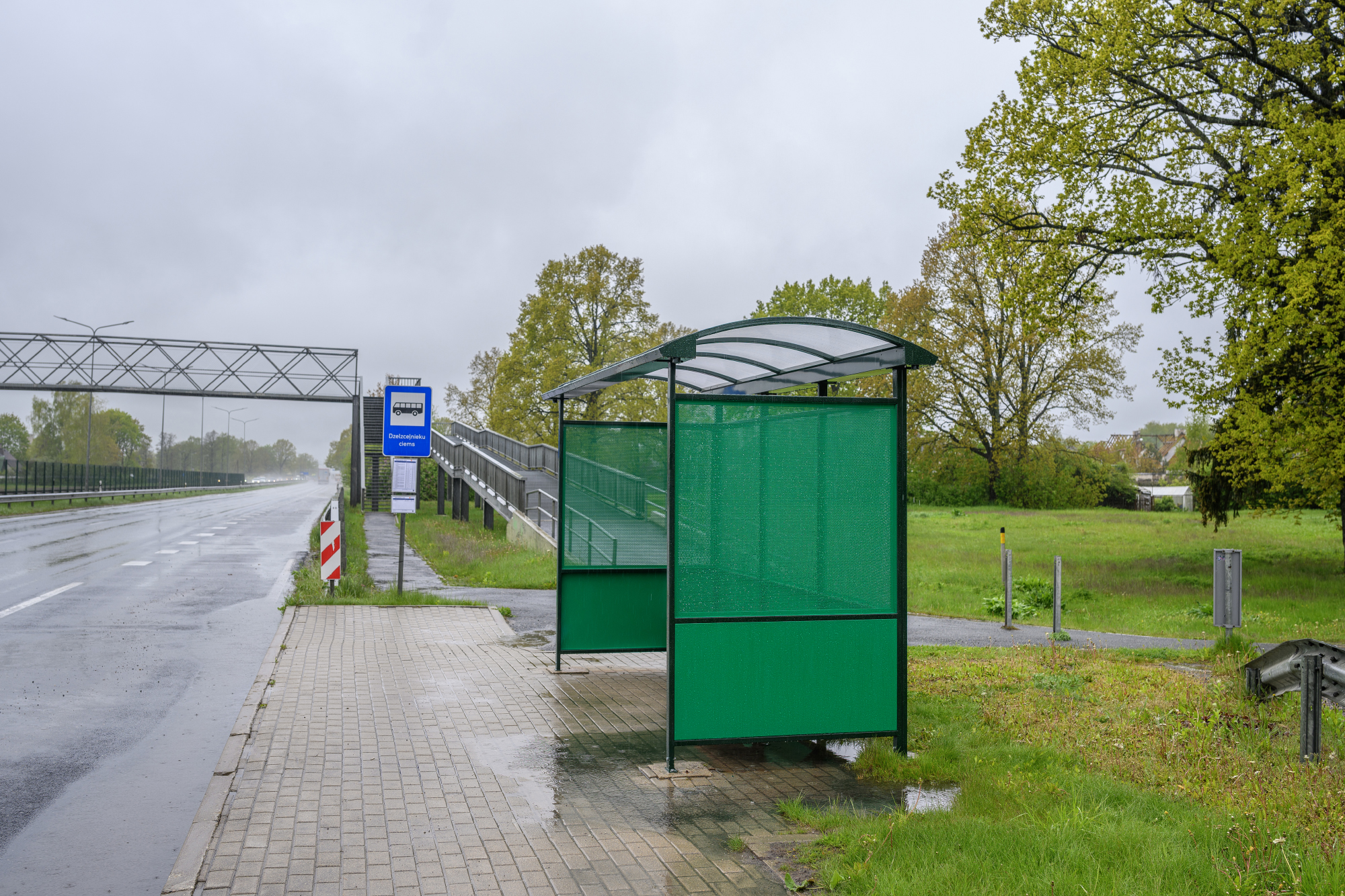 | Uz A8 šosejas Jaunolainē pie pieturas “Dzelzceļnieku ciemats” novietota pieturas nojume. | ![]() |