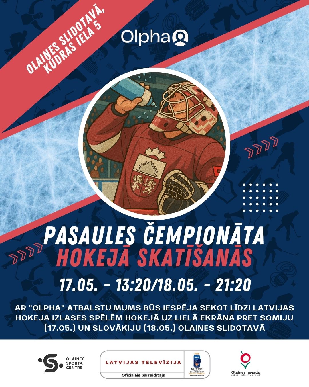 | Sadarbībā ar AS “Olpha” šosestdien un šosvētdien Olaines slidotavā Kūdras ielā 5 novada iedzīvotājiem būs iespēja vērot Latvijas izlases hokeja spēles lielajā ekrānā. | ![]() |