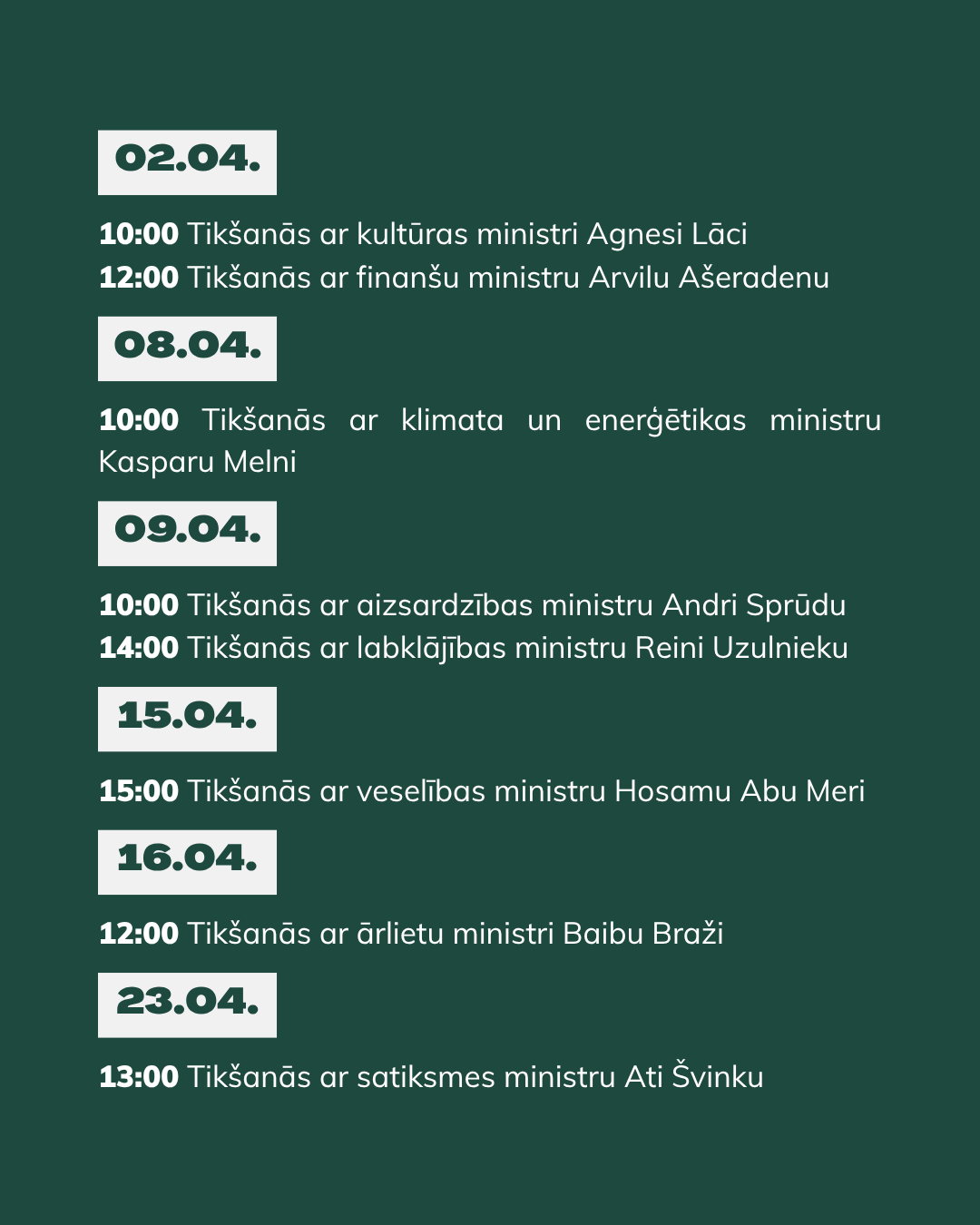 Tuvākās tikšanās plānotas 2. aprīlī: