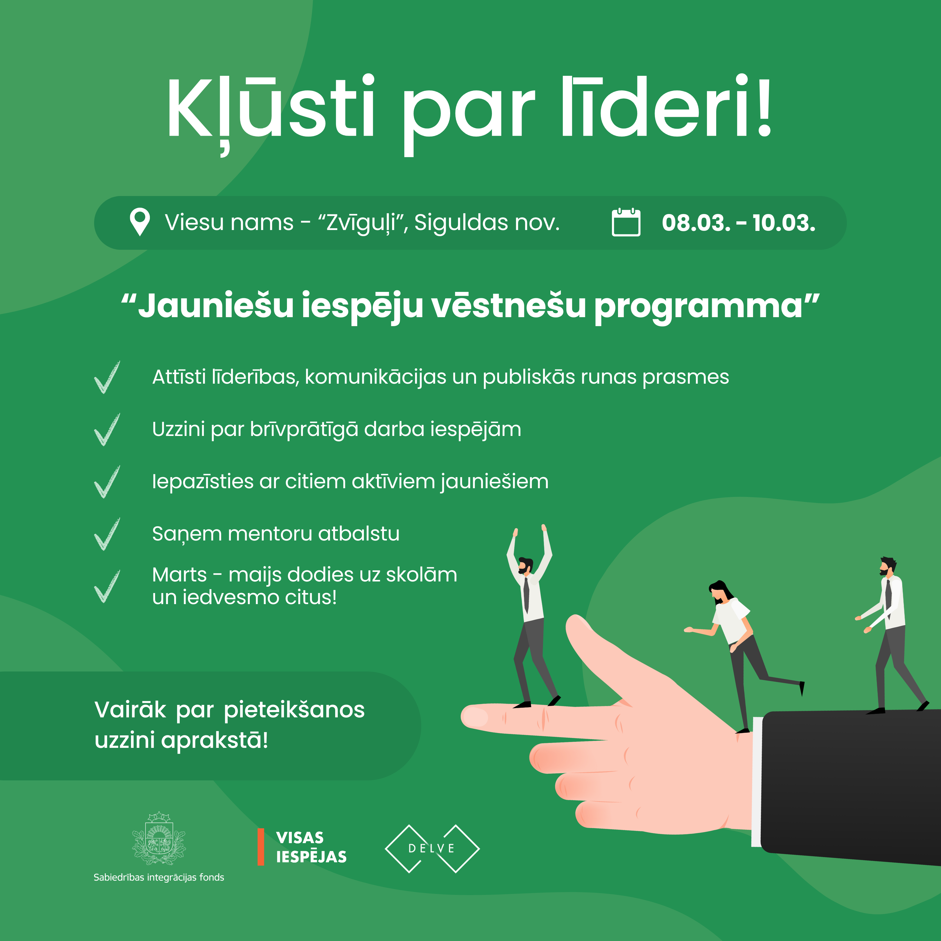 -> Papildu informācija: https://visasiespejas.lv/event/jauniesu-iespeju-vestnesu-programma