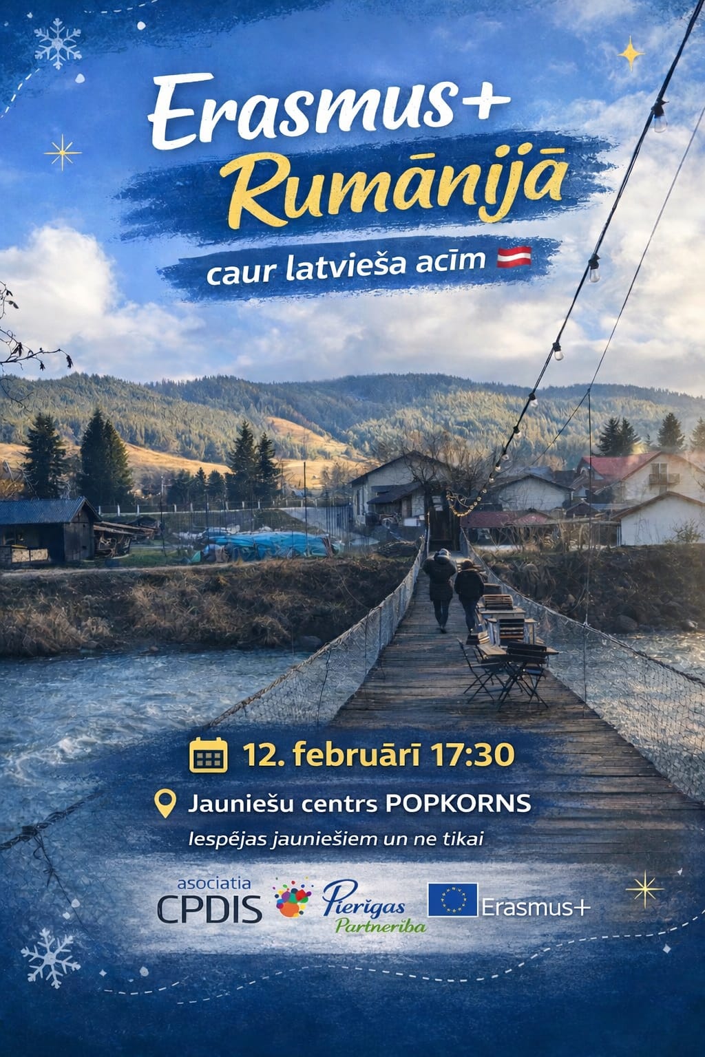Aicinām piedalīties pasākumā, kurā tiks stāstīta personīga pieredze par dalību Erasmus+ jauniešu projektā Rumānijā. Jaunieši godīgi pastāstīs, kas bija forši, kas izaicinoši, un kā jaunieši var iesaistīties nākamajos Erasmus+ projektos. Pasākums ir īpaši piemērots jauniešiem, kuri interesējas par ceļošanu, jaunām pieredzēm un Erasmus+ iespējām.