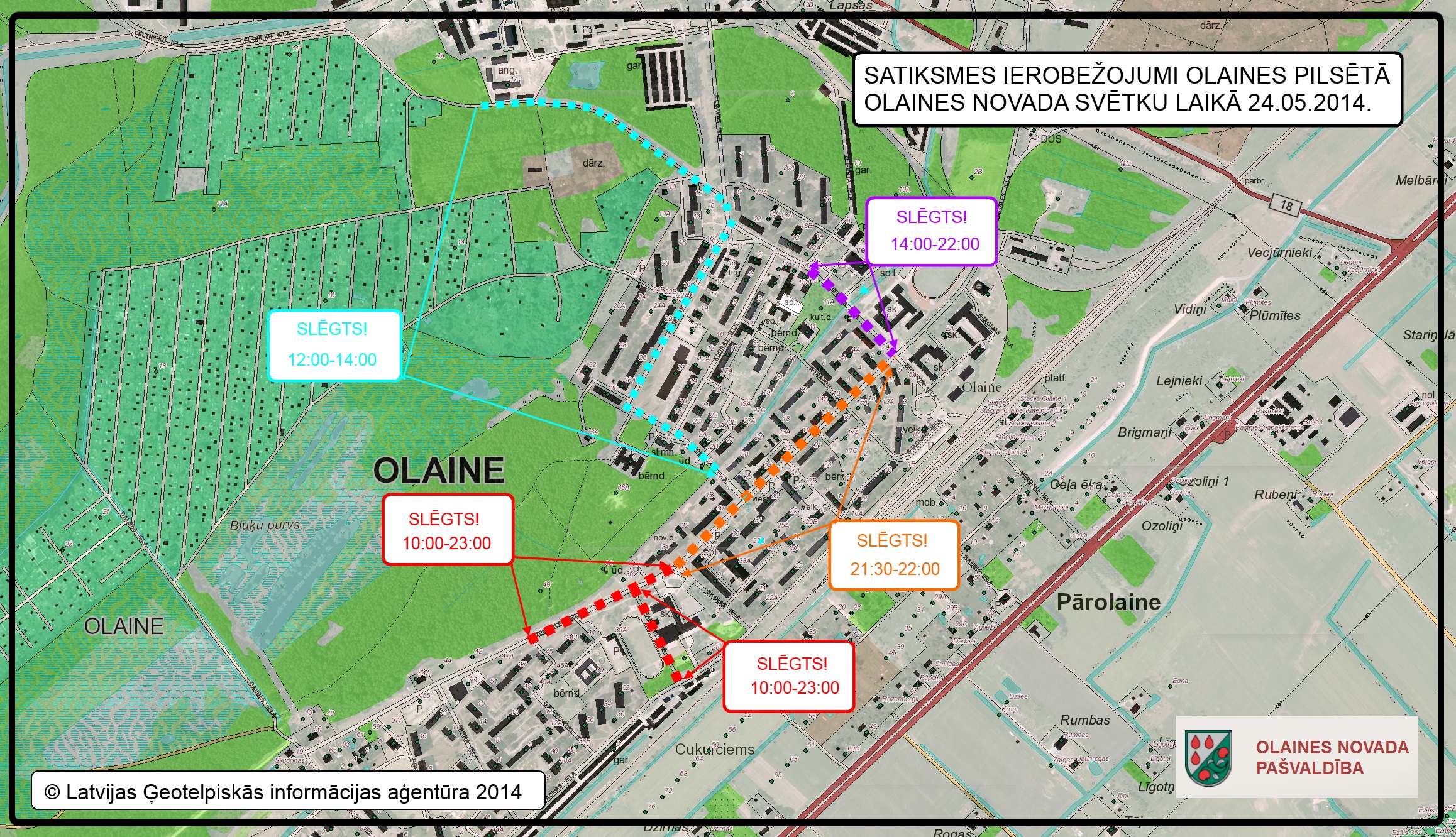 Satiksmes ierobežojumi Olaines novada svētku laikā