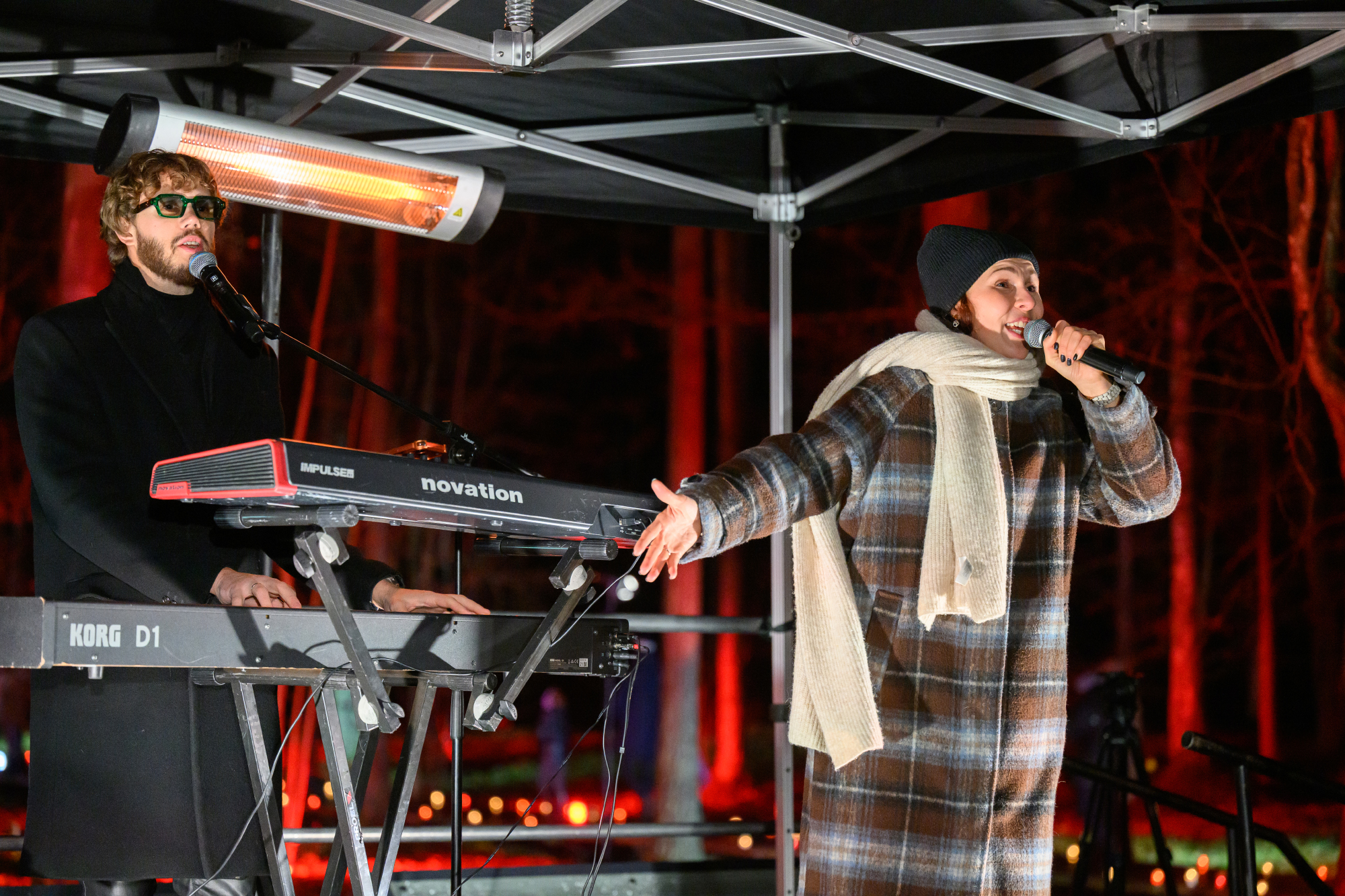 Pēc uzrunas sekoja muzikāls sveiciens, par ko šogad rūpējās Rūta Dūduma-Ķirse un Jānis Ķirsis - viņu emocionālais priekšnesums piepildīja vakaru ar gaismu, pateicību un lepnumu par mūsu Latviju.