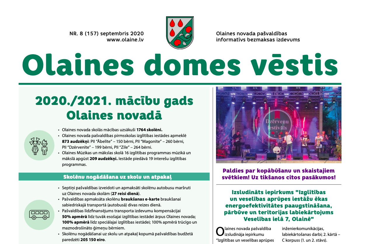 Informējam, ka ir iznācis pašvaldības informatīvā izdevuma "Olaines domes vēstis" septembra numurs.