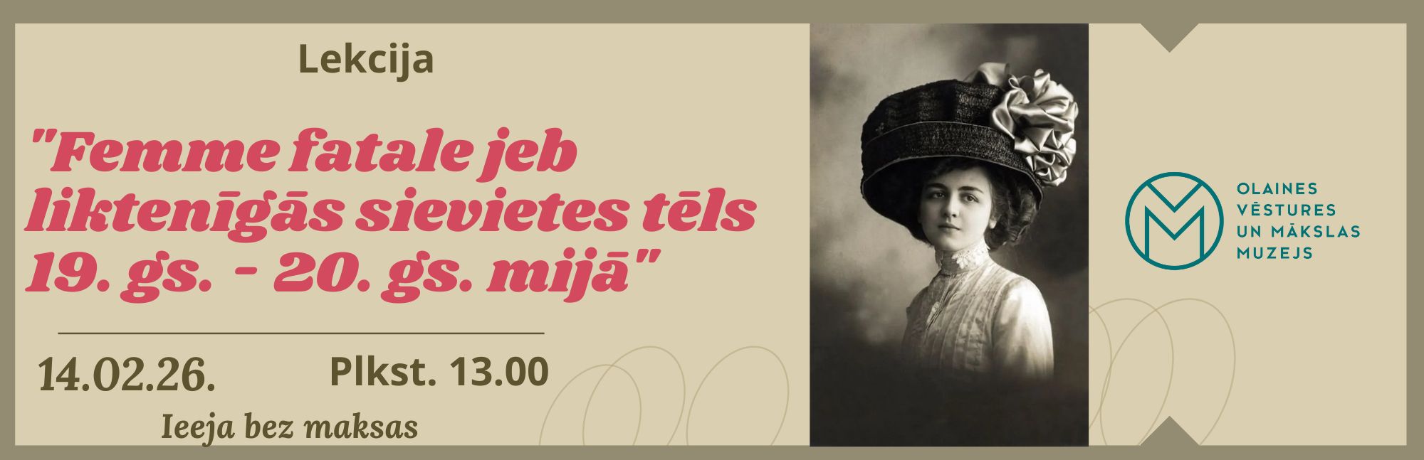 Jājautā, kas šīs noslēpumu glabātājās bija, un kādēļ tieši viņām bija lemts kļūt par femme fatale? To visu uzzināsim mākslas zinātnieces Ineses Gāteres lekcijā “Femme fatale jeb liktenīgās sievietes tēls 19. gs. -20. gs. mijā”, Olaines vēstures un mākslas muzejā, 14.02. plkst. 13.00.
