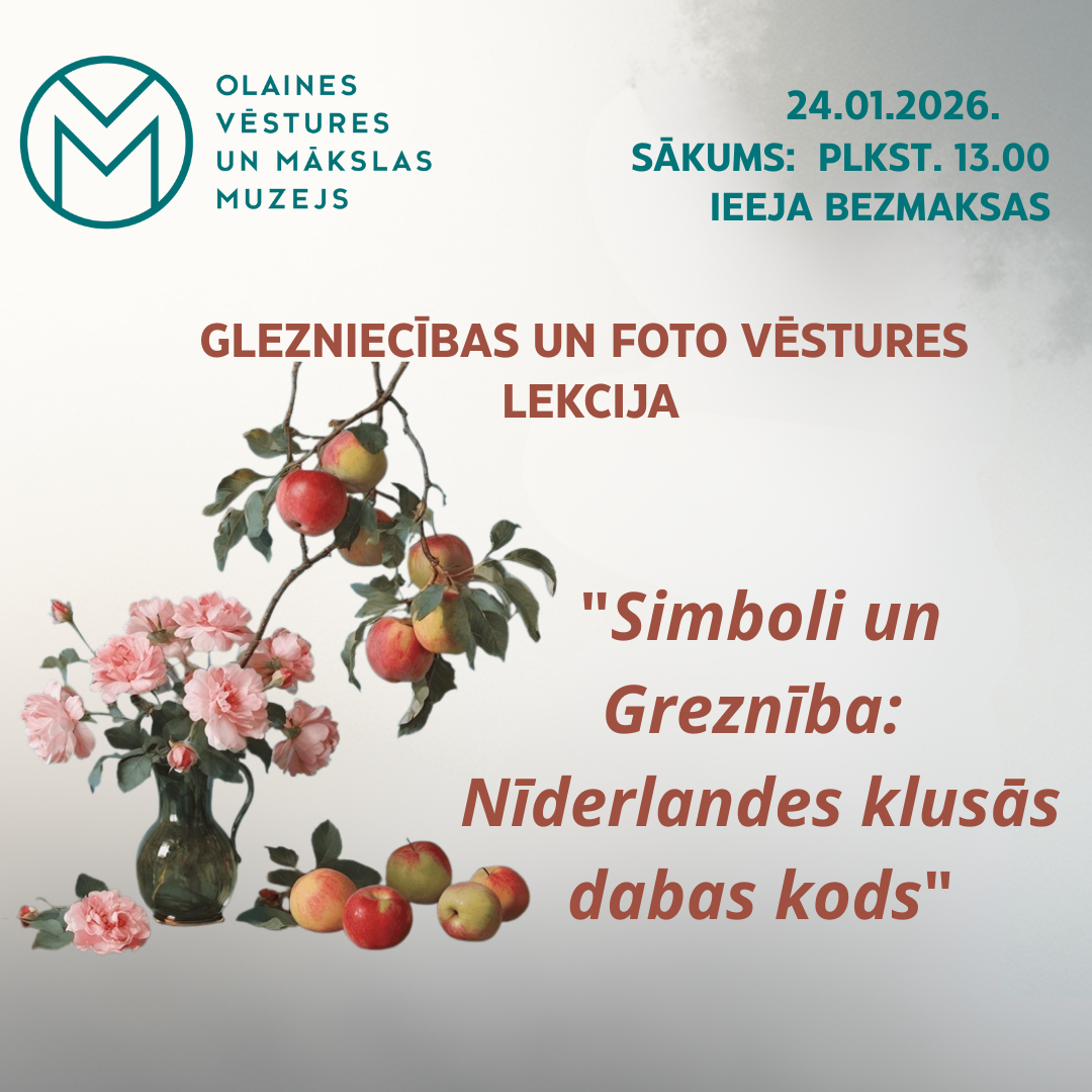 Ja vēlies uzzināt daudz interesantus faktus par unikālo mākslas žanru – kluso dabu, un tās noslēpumiem, būsi mīļi aicināts uz mākslas zinātnieces un muzejpedagoģes Ineses Gāteres glezniecības un foto vēstures lekciju “Simboli un greznība: Nīderlandes klusās dabas kods”, 2026. gada 24. janvārī, plkst. 13.00 Olaines Vēstures un mākslas muzejā.