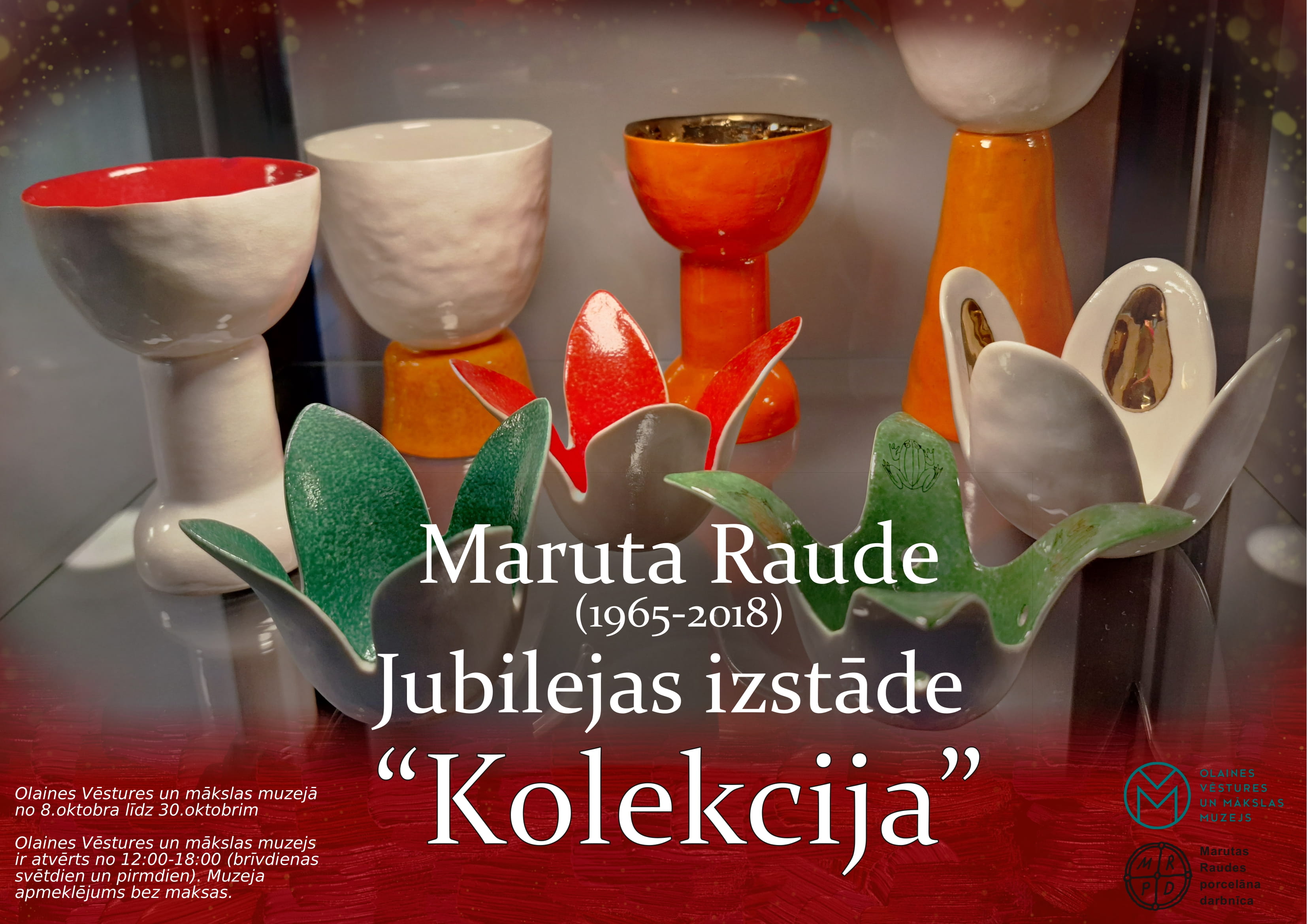 No 07. līdz 30. oktobrim Olaines Vēstures un mākslas muzejā būs apskatāma biedrības “Marutas Raudes mākslas centra” organizētā izstāde, kurā ikviens interesents varēs iepazīties ar porcelāna mākslinieces Marutas Raudes (1965-2018) atstāto radošo mantojumu.