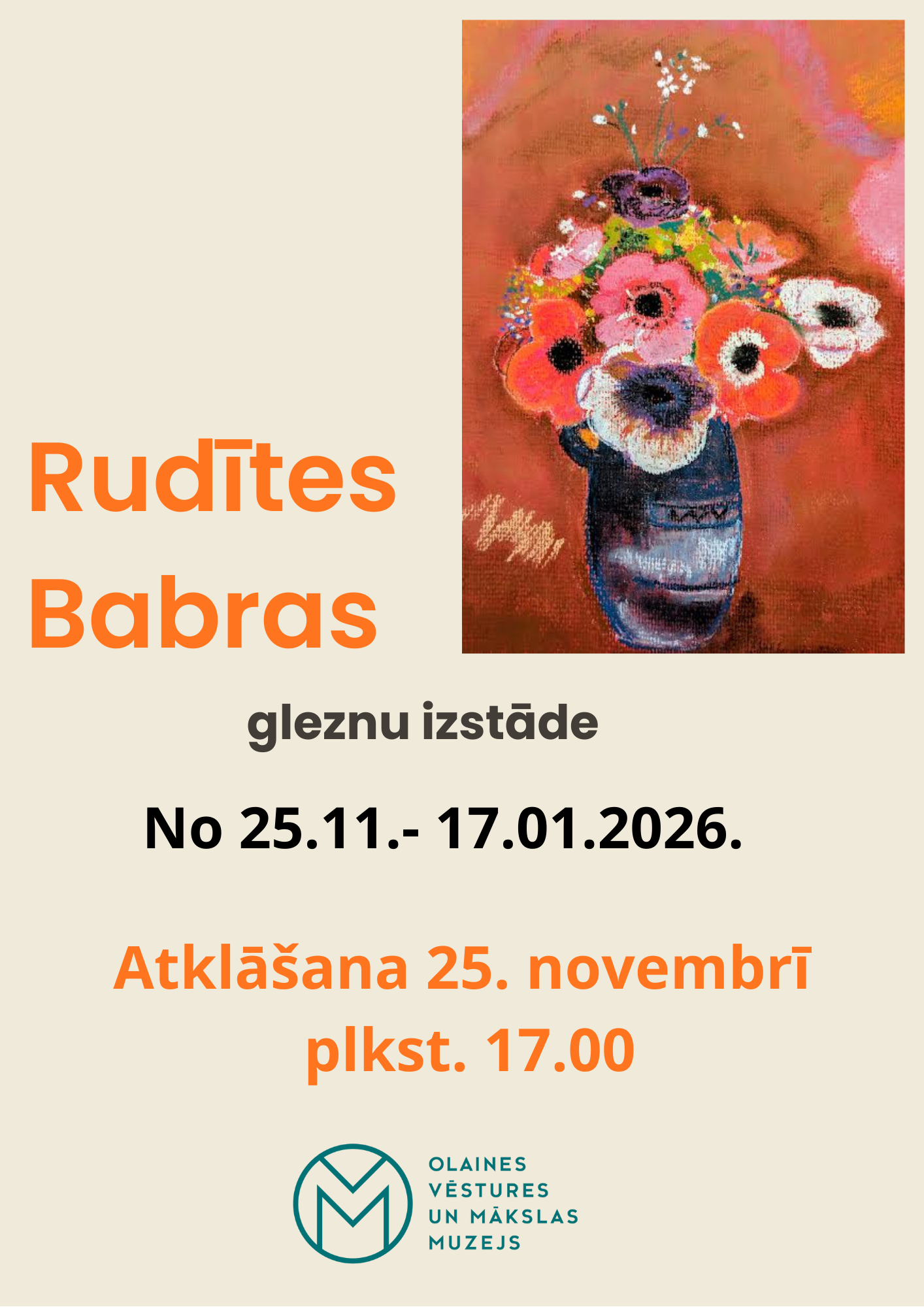 No 25. novembra līdz 2026. gada 17. janvārim Olaines Vēstures un mākslas muzejā būs apskatāma Rudītes Babras gleznu izstāde.